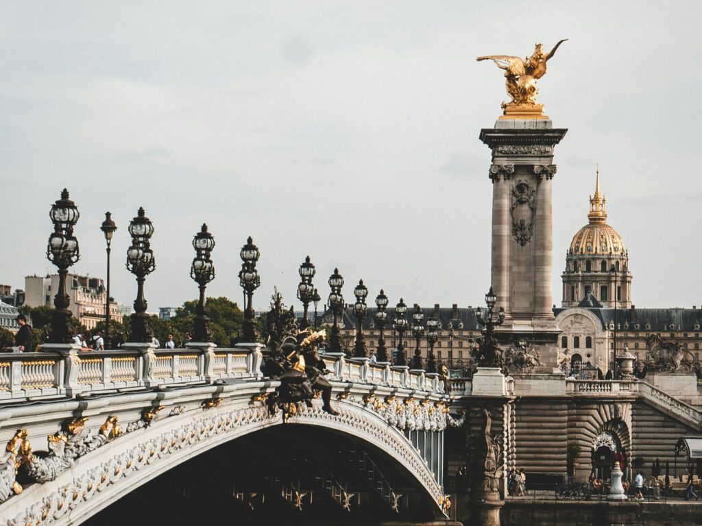 セーヌ川にかかる、金色の装飾が美しい豪華な橋。