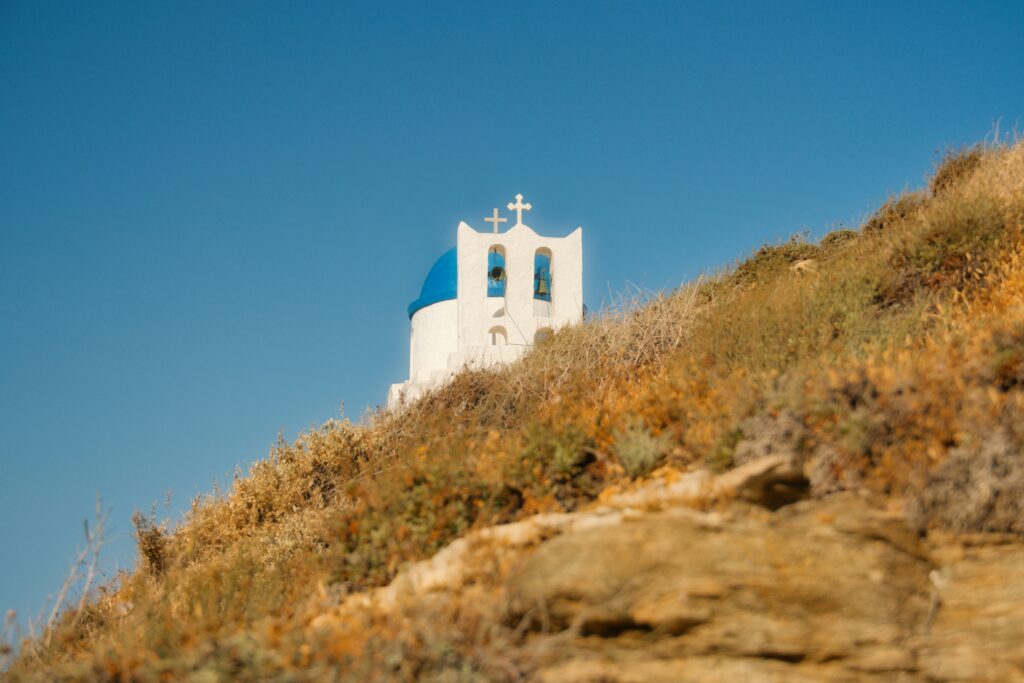 島の最南端にある灯台。観光客が少なく、エーゲ海に沈む夕日をゆっくりと眺められる穴場スポットです。